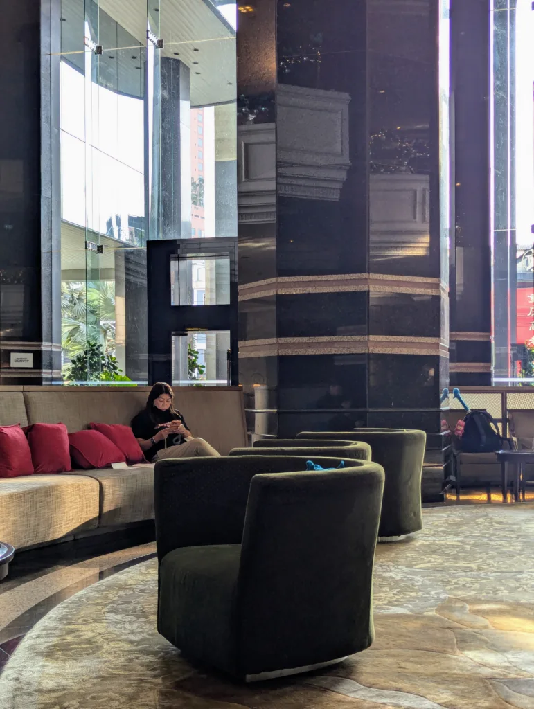 Looks like I’m not the only one lurking around the lobby waiting for their partner. “Yeah, I arrived about 40 minutes ago. How close are you?”