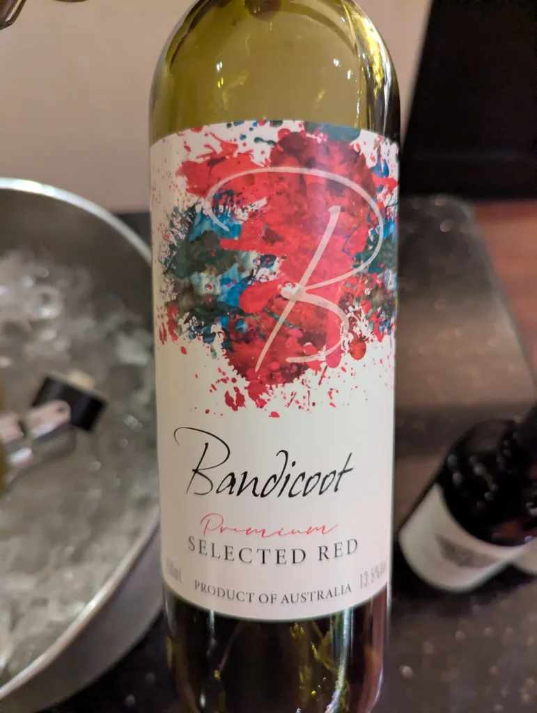 Bandicoot Estate also provides the sparkling but their red, another blend, has a rough nose. It’s a sunny tasting wine but fairly acid. I wouldn’t buy this.