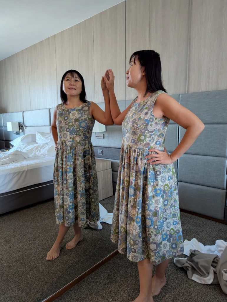 Floor to ceiling mirrors allow for some arresting photography. I think this one of Mrs Sachie is sweet.